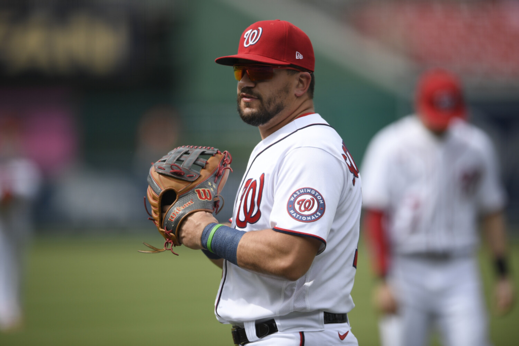 Kyle Schwarber played primarily left field for the Washington Nationals but is excited to give first base a try with the Boston Red Sox. Nick Wass/Associated Press