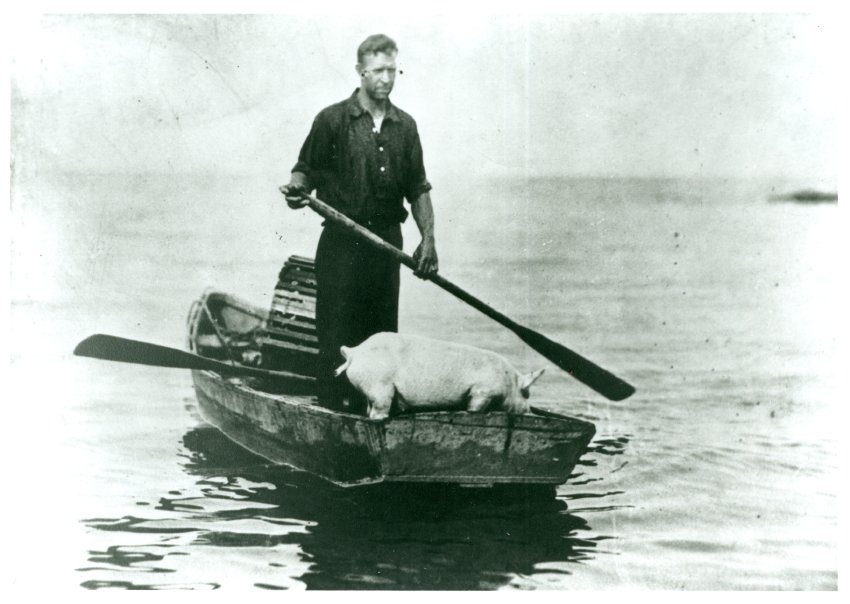Frank Darling, a lobsterman of Cape Elizabeth in 1918, and his pet pig, who always went with him, according to the Cape Elizabeth Historical Preservation Society. Courtesy photo Cape Elizabeth Historical Preservation Society