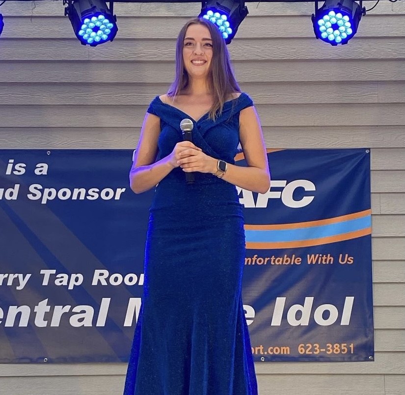Katie Oberholtzer, a Cape Elizabeth resident, at the first Central Maine Idol in July. Courtesy photo