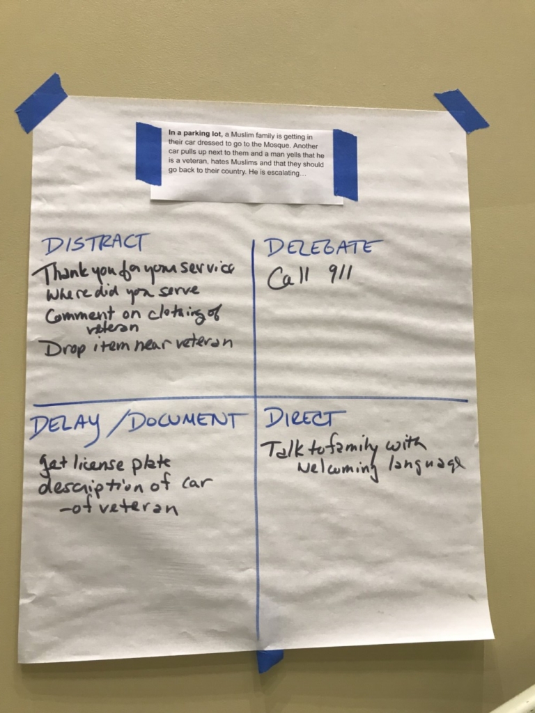 She and Clara Porter of the Portland-based advocacy group Prevention Action Change presented participants with actual scenarios and led discussions on how to respond safely in order to protect a person being targeted.