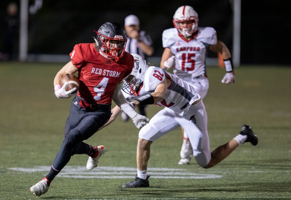 Scarborough then got the ball back at the Sanford 48, but was content to run out the clock, as junior D’Angelo Alston ran for four yards, then sophomore Monty Russell gained three as the horn sounded and the Red Storm celebrated their 49-13 victory.