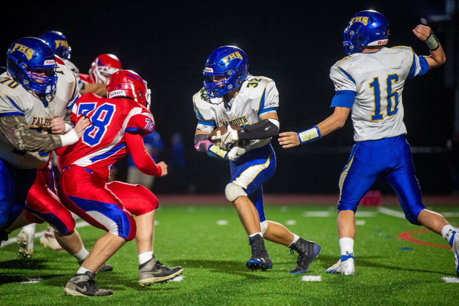 Freeport returned to action last Friday after COVID and low numbers forced a cancellation the week before. The Falcons made the trip to Bucksport with a limited roster, but prevailed, 26-7, to improve to 4-1. Freeport broke open a scoreless game in the third quarter, getting three touchdown runs from Jordan Knighton (19 carries, 177 yards) in just over four minutes. After Knighton opened the scoring with a 29-yard run, an interception and a fumble set up two more quick TDs that gave the Falcons a 20-0 lead. Quarterback Aidan Heath scored on a 2-yard run in the fourth quarter.