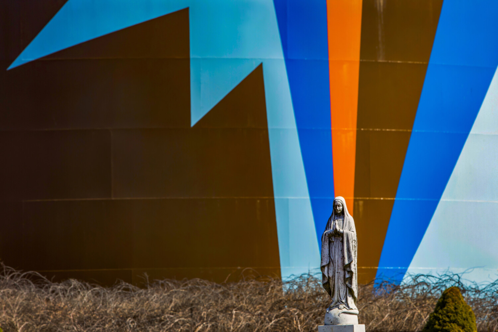 That’s not to mention, of course, that even the apparent beauty of something like “Climbing Out of the Blue Room” can evoke conflicting feelings: The image is lush and captivating, but should we like it? It does, after all, contain oil and, in 2019 caused unhealthy emissions over which one of the companies at these tank farms was sued.