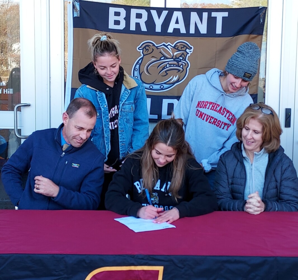 “It’s nice to have so many people come out here today,” Supple said. “A lot of friends and some soccer girls. I’m so excited for the next four years. I’ve dreamed about this for awhile. When I was a freshman, I saw some seniors signing and I thought it would be so cool to do that some day. I was looking at a lot of schools and went to some camps, but toward the end of the summer, I started talking to Bryant. I went on a visit and loved the campus and the coach and the girls. They were so friendly and welcoming. After going there, I knew this was where I wanted to spend the next four years.”