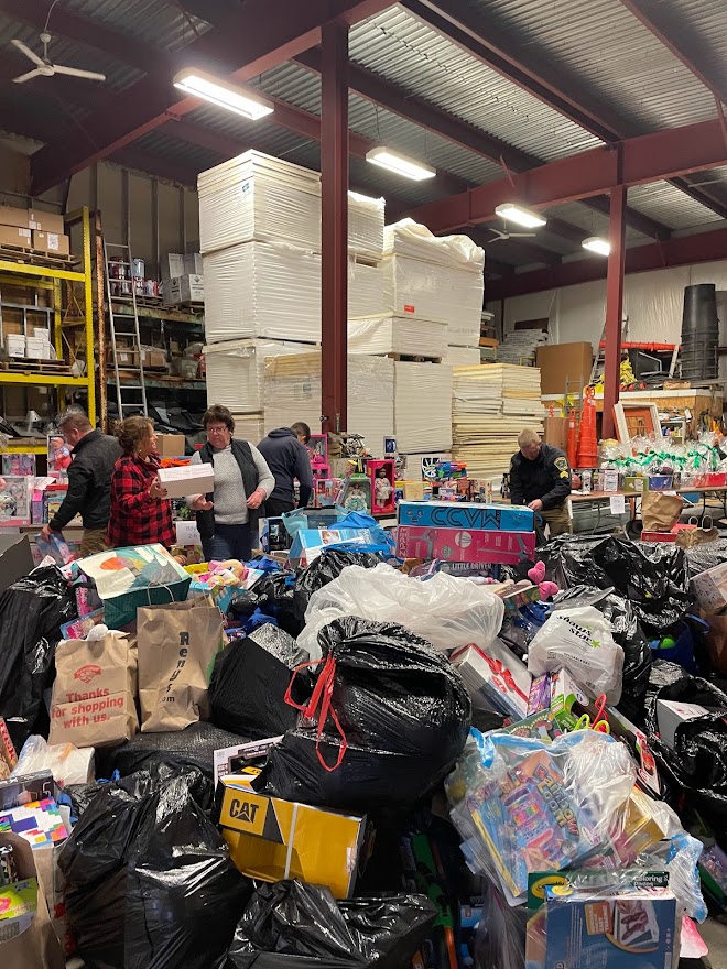 On Monday, Dec. 13, members of the police and fire departments along with volunteers, unloaded an overfilled box truck and sorted and bagged all of the items for each of the families. Courtesy photo