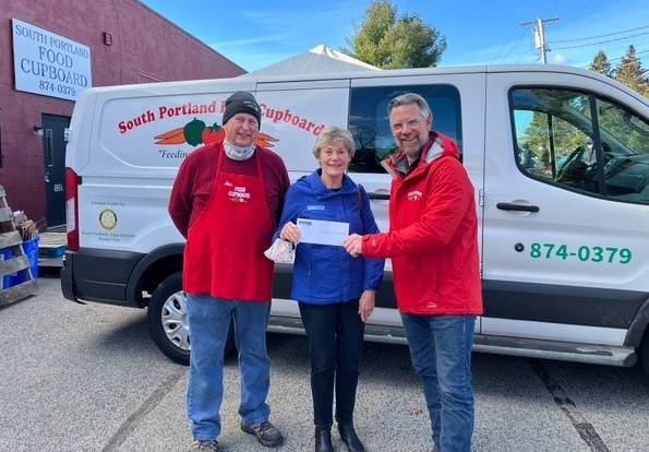 From left, Jim Welch, South Portland Food Cupboard, Linda Halleran, Community engagement manager at Town & Country Federal Credit Union and Dwayne Hopkins, executive director for the food pantry. Halleran presented a contribution to the organization as part of the credit union’s “Gift of Food” initiative to fight holiday food insecurity. Courtesy photo