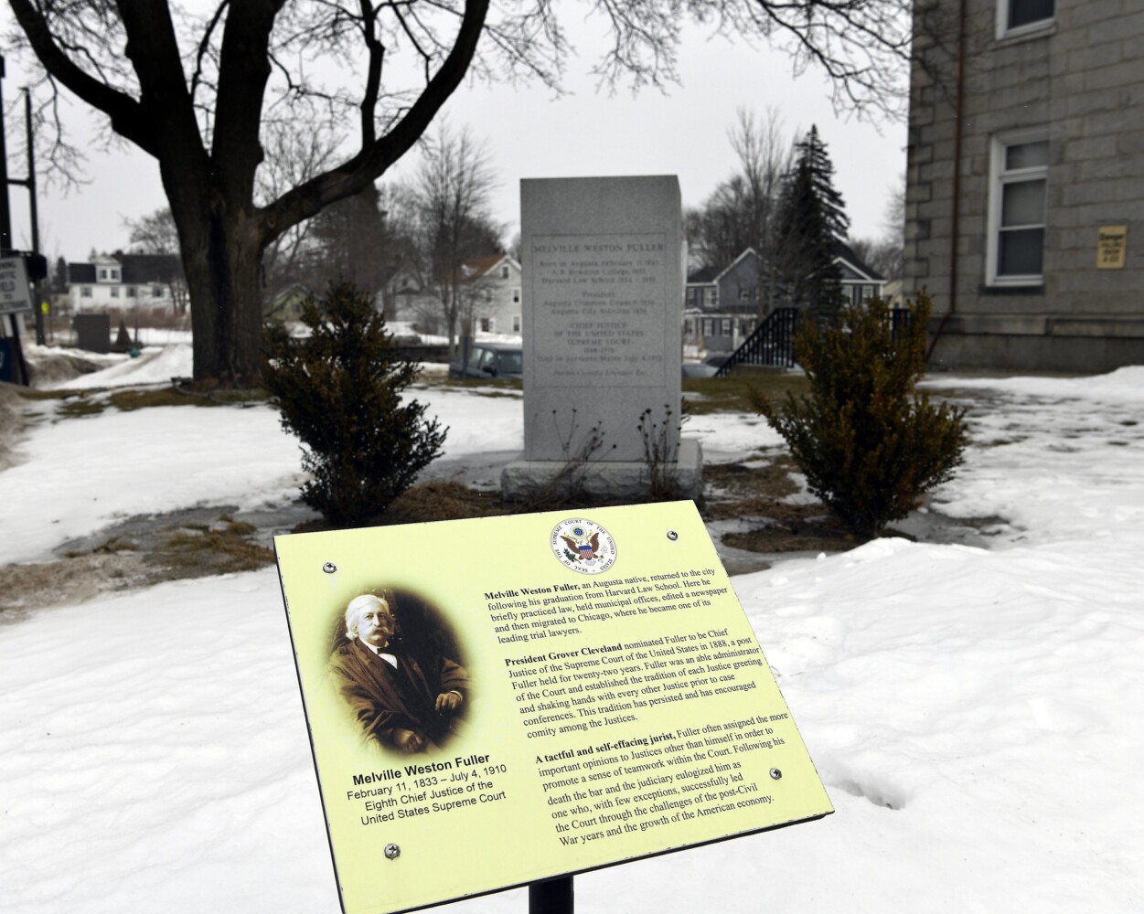 Melville Fuller was an Augusta native who was sworn into the state bar inside the Kennebec County Courthouse. He was chief justice and joined the majority when the court decided the landmark Plessy v. Ferguson case, which codified the “separate but equal” doctrine that was the basis of racial segregation laws in the United States.