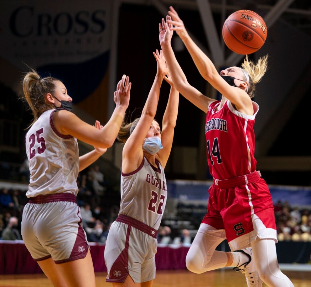 Gorham entered the season as a favorite in Class AA South and lived up to billing, winning its first eight games and after falling at Scarborough, winning five more. After losses to Massabesic and Brunswick, the Rams closed by beating South Portland and Noble. Gorham then eliminated No. 8 Noble (57-28) in the quarterfinals before ousting No. 4 Massabesic (51-43) in Wednesday’s semifinal round.