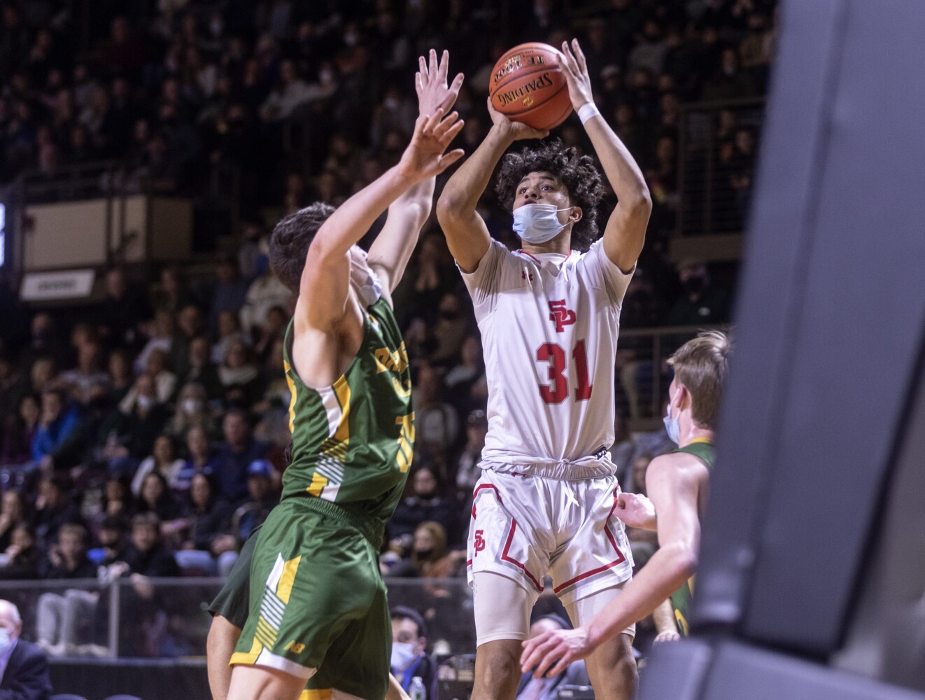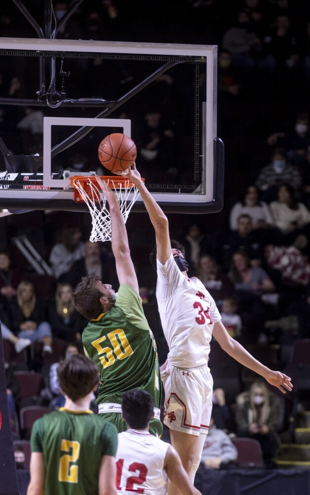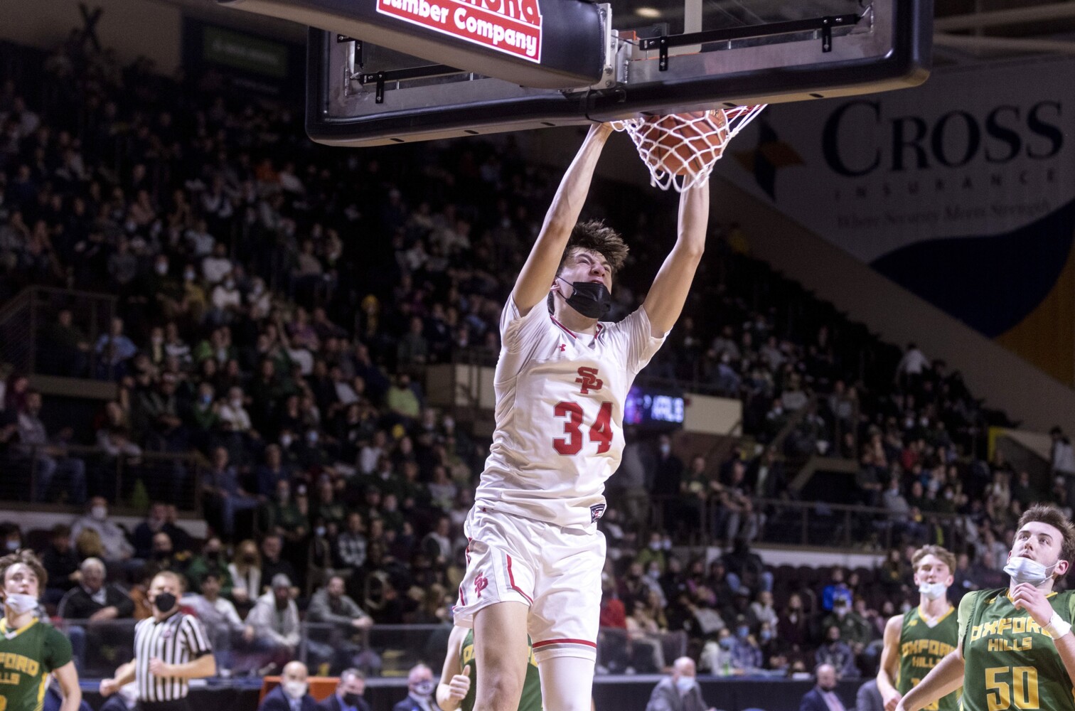 South Portland’s JP Estrella dunks in the last few minutes of the Class AA state championship game against Oxford Hills on Saturday. Brianna Soukup/Staff Photographer