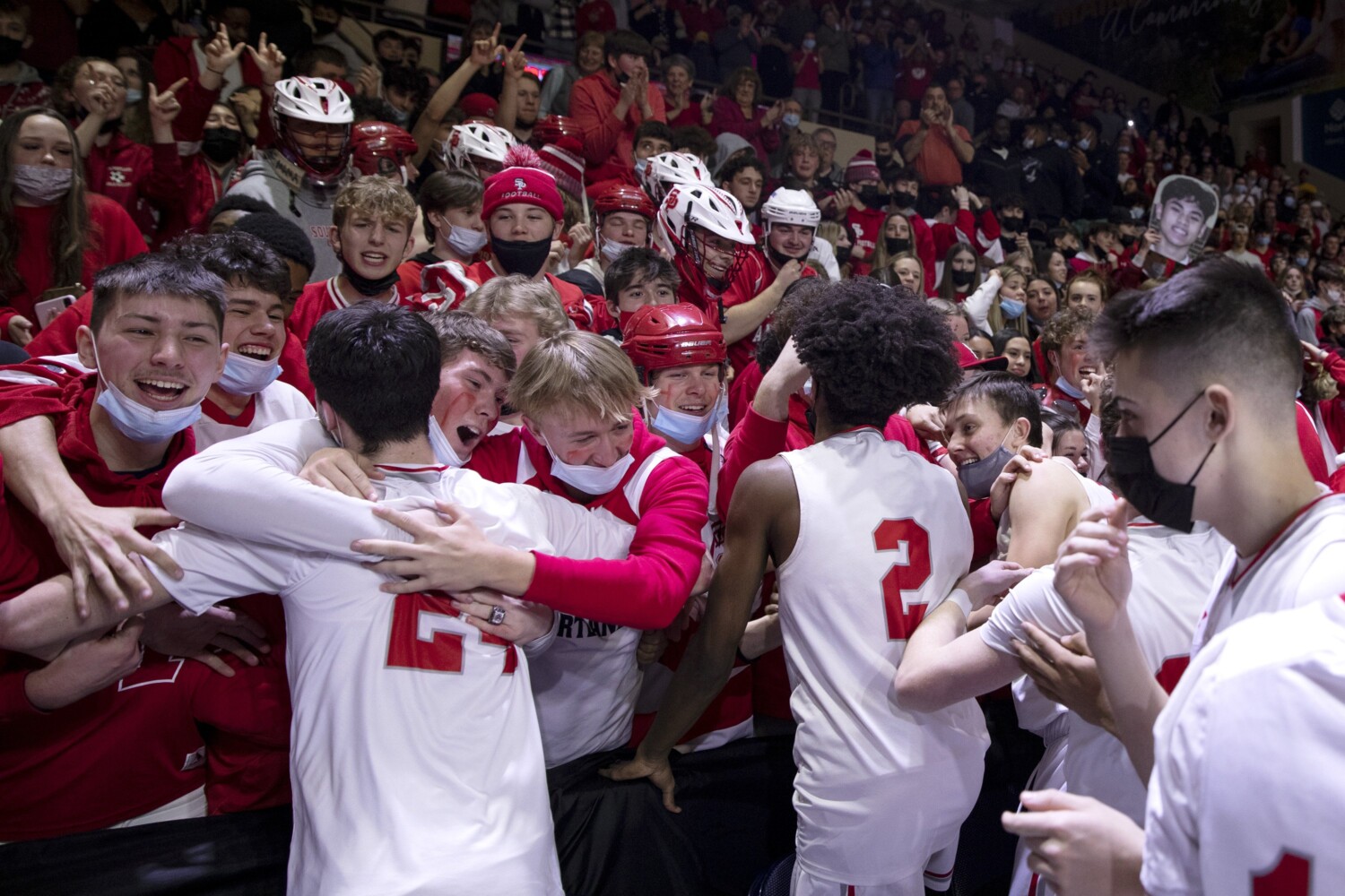 The Red Riots celebrate with their classmates after beating Oxford Hills for the title. Brianna Soukup/Staff Photographer