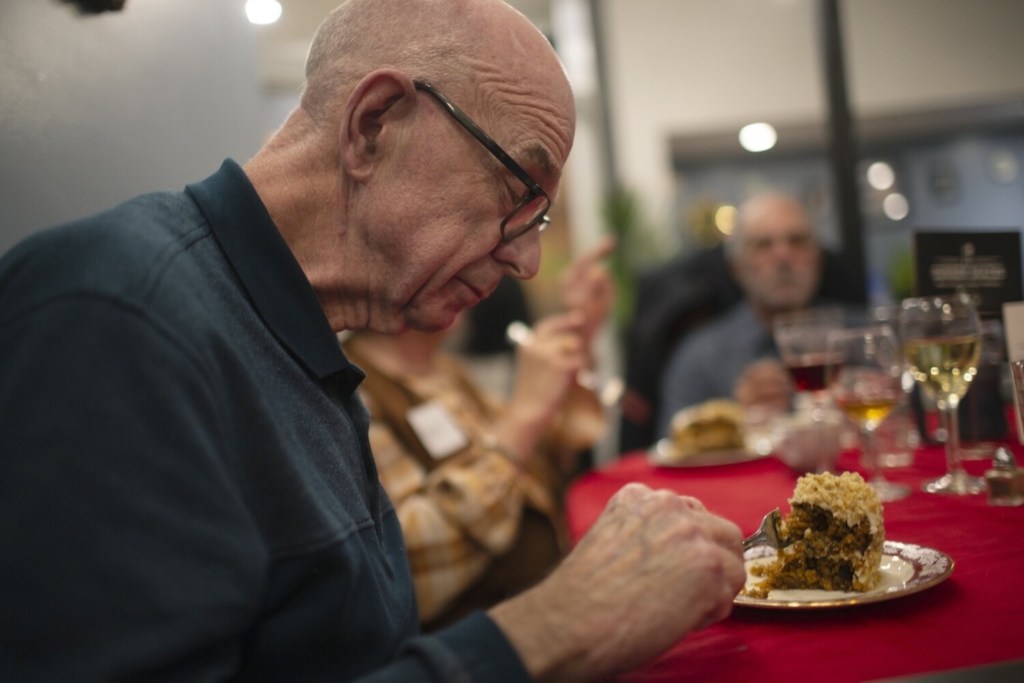 Dan Reardon of Portland tries homemade carrot cake at the Dinner Mates event at Ruby’s. Derek Davis/Staff Photographer