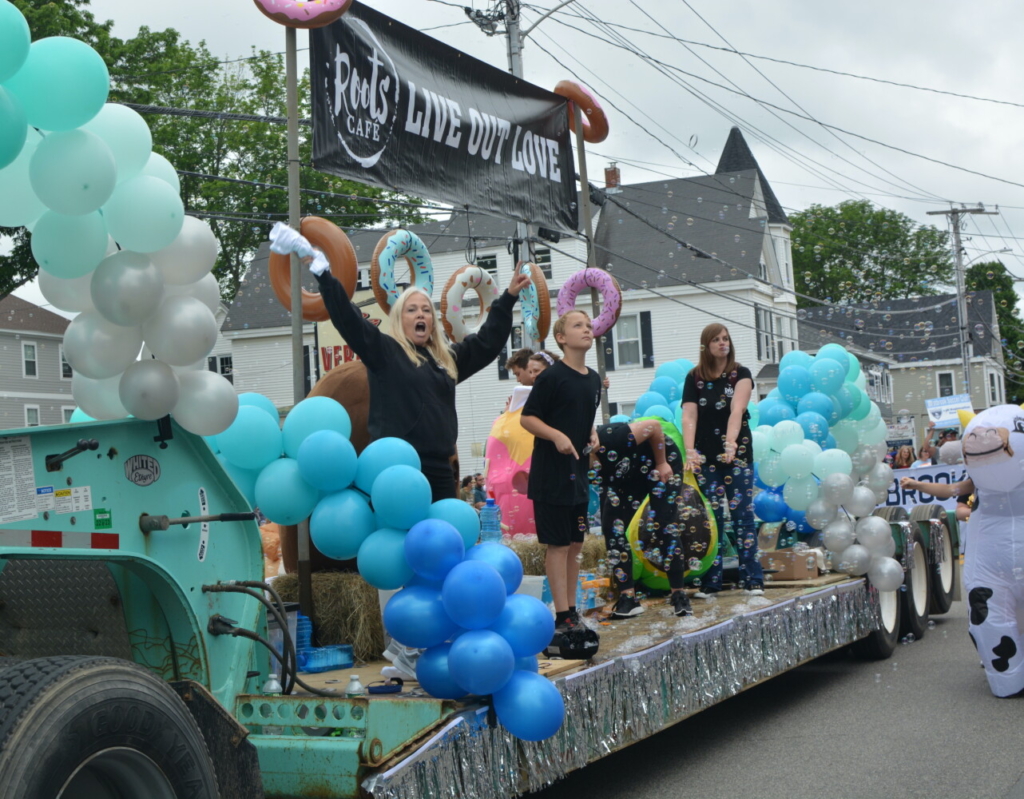 Roots Cafe parades a large float shooting bubbles. Chance Viles / American Journal