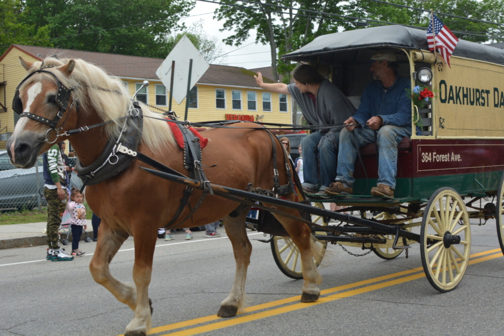 Oakhurst Dairy of Portland joined the Together Days parade in Westbrook last weekend in a horse-drawn milk delivery truck like those the company used a century ago. Chance Viles / The Forecaster