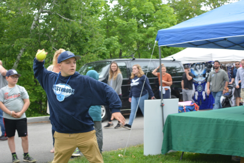 Westbrook Middle Schooler Nathan Remington hits the dunk tank target with his first try at Together Days Saturday. Chance Viles / American Journal