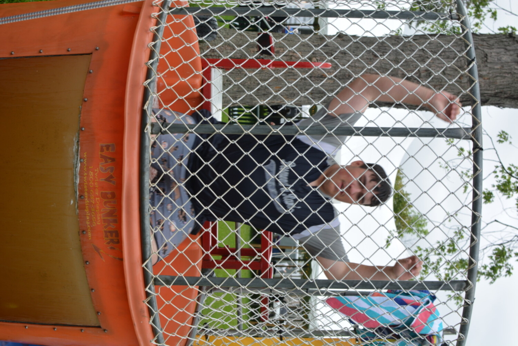 Westbrook High School varsity first basemen Garren Post gets takes the plunge at the popular dunk tank at Together Days. Proceeds from the game benefit local youth baseball. Chance Viles / American Journal