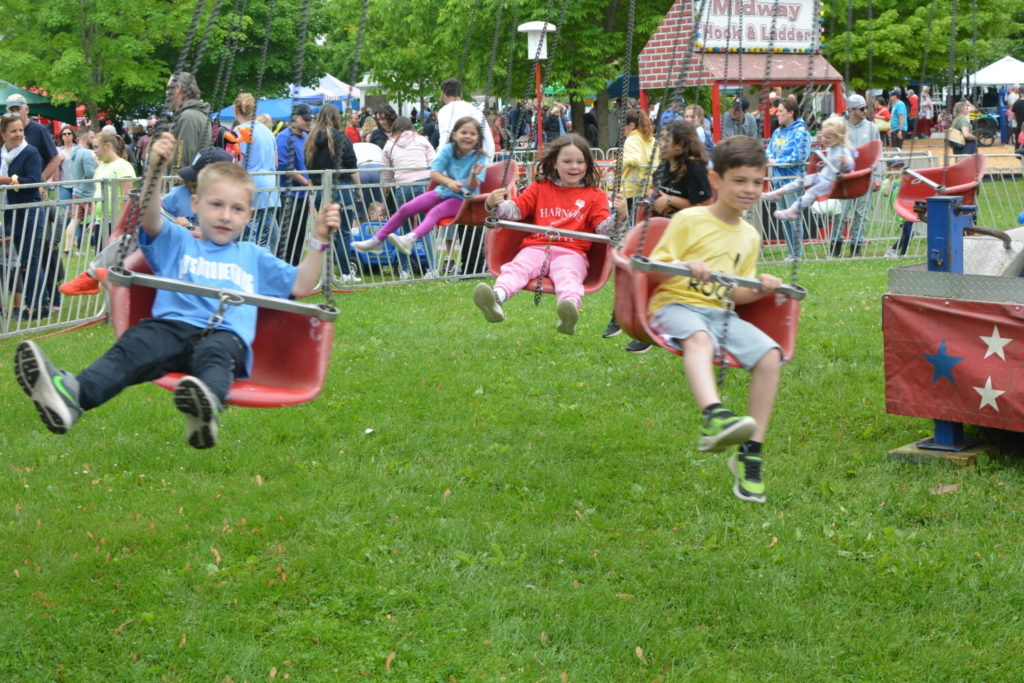Kids enjoy a swinging ride at Westbrook Together Days on Saturday. The event featured a number of carnival rides and games, as well as food vendors and shops. Chance Viles / American Journal