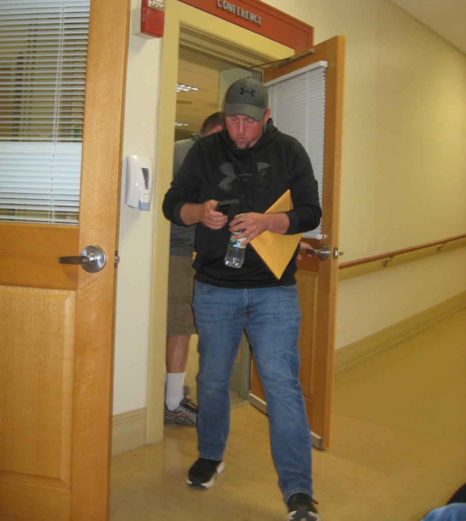Eric Lane exits a closed-door meeting with Gorham’s School Committee June 22. Robert Lowell / American Journal