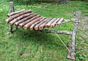 A raw log Amadinda, similar to those that will be built and played during the Wiscasset Art Walk. Courtesy photo
