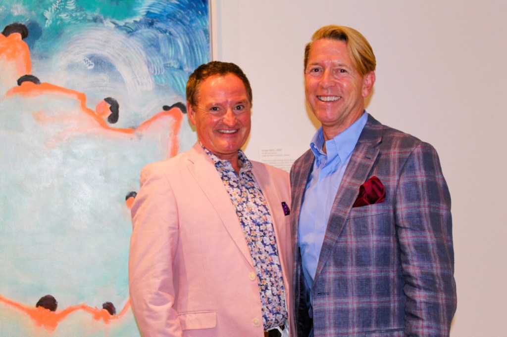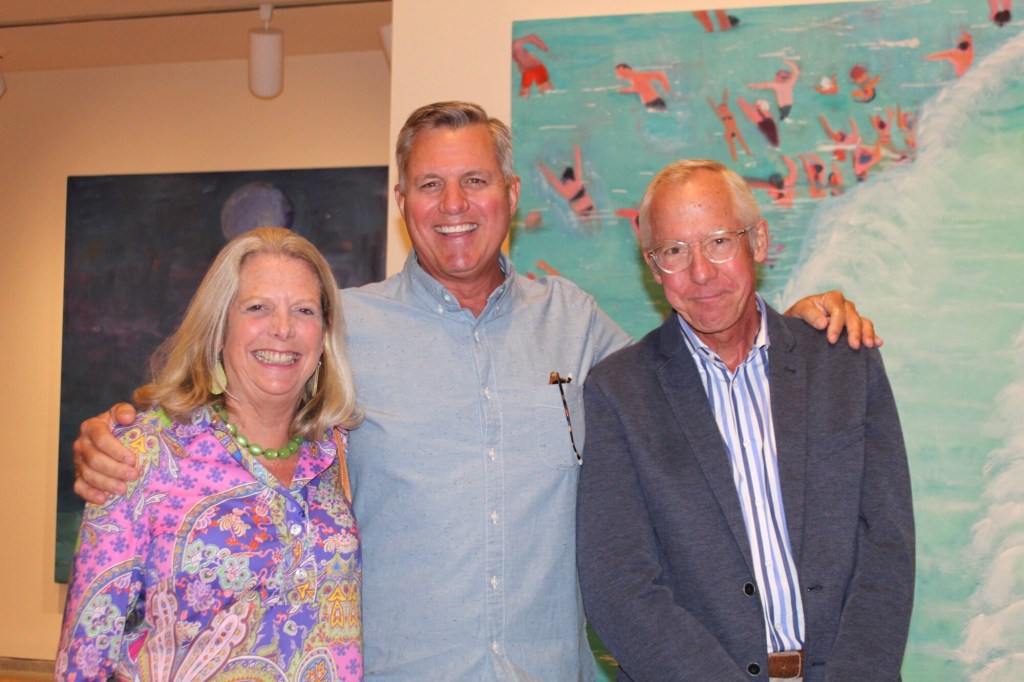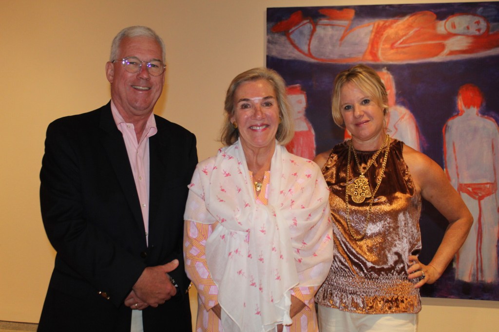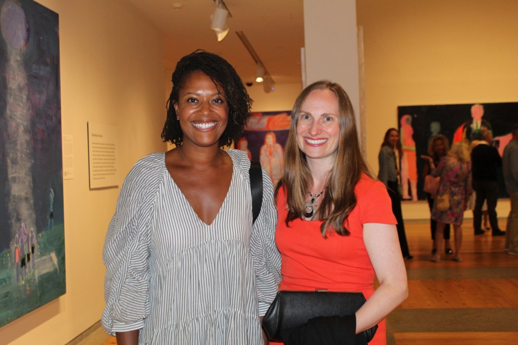 Sponsors and host committee members enjoyed a pre-party tour of the Bradford exhibit – a vibrant world of superheroes and swimmers – guided by PMA Director Mark Bessire. The 1999 painting “Flying Woman,” from which the exhibit gets its name, is a sort of self-portrait, a woman in a red cape and nothing else, set against a blue sky. It is left up to interpretation whether she is flying upward or descending in an act of power and vulnerability.