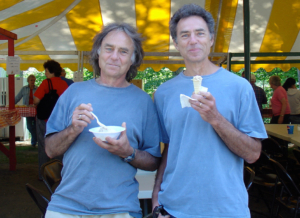 In a more low-profile diversion than the one portrayed in this story, Jan Wejchert, left, of Waldoboro enjoys a North Nobleboro Day celebration with his brother, Mark, right. Photo courtesy of Jan Wejchert
