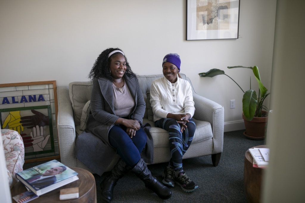 Lidia Antonio, right, and Vanessa Bunga outside of the Greater Portland Immigrant Welcome Center on Thursday. Both women, who are asylum seekers originally from Angola, are candidates for the center’s new entrepreneurial leadership institute for women which is being created after they were awarded a federally funded grant. Bunga was an engineer back in Angola and hopes to go back to school here in Maine so she can be on her way to an engineering career here and Antonio wants to become a nurse. Brianna Soukup/Staff Photographe