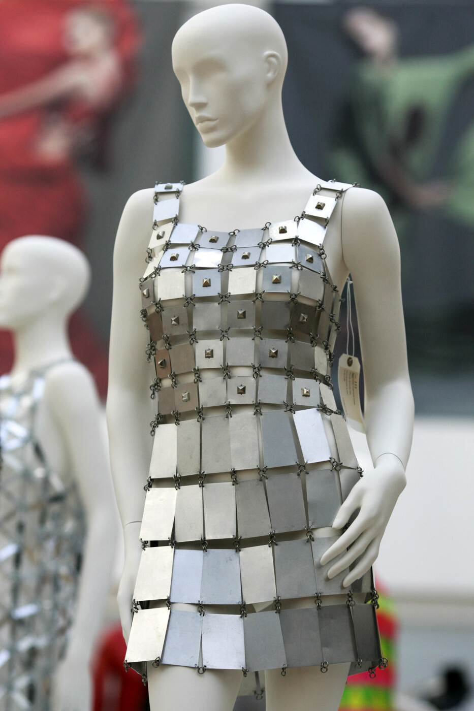A Paco Rabanne rare aluminum tunic dress is seen on display at Christie’s auction house in London in 2008. Sang Tan/Associated Press