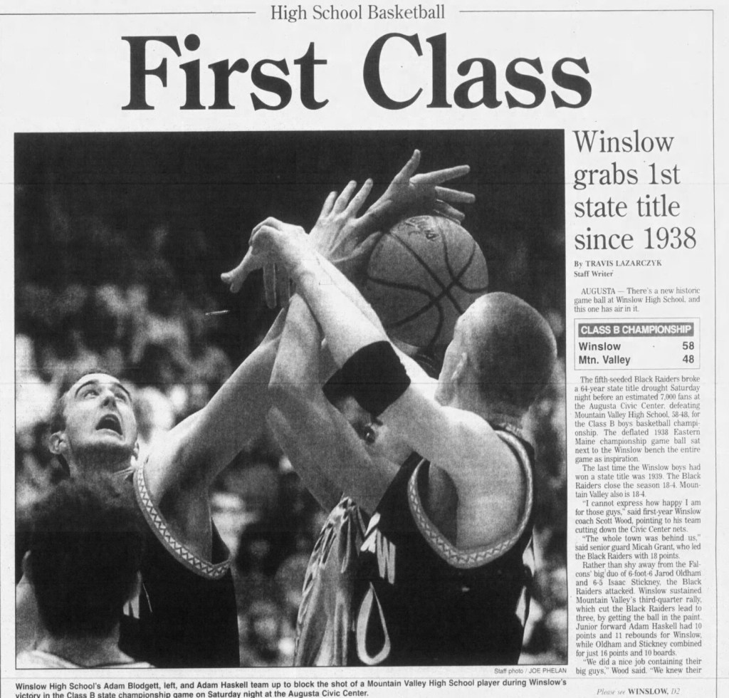 Winslow had won three close games at the Bangor Auditorium, beating Mt. Desert Island 52-44, Camden Hills 52-49 and Erskine Academy 52-48. This time, playing for the Gold Ball, the Black Raiders appeared to have their hands full against a Mountain Valley team with two big forwards, 6-foot-6 Jarod Oldham and 6-5 Isaac Stickney.