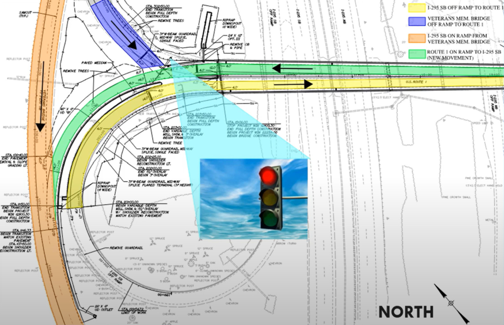 Drivers coming from Veterans Memorial Bridge to Route 1/Main Street in South Portland currently merge with the I-295 South Exit 4 off-ramp, but with the new project, the ramp will carry two-way traffic, creating an intersection.
