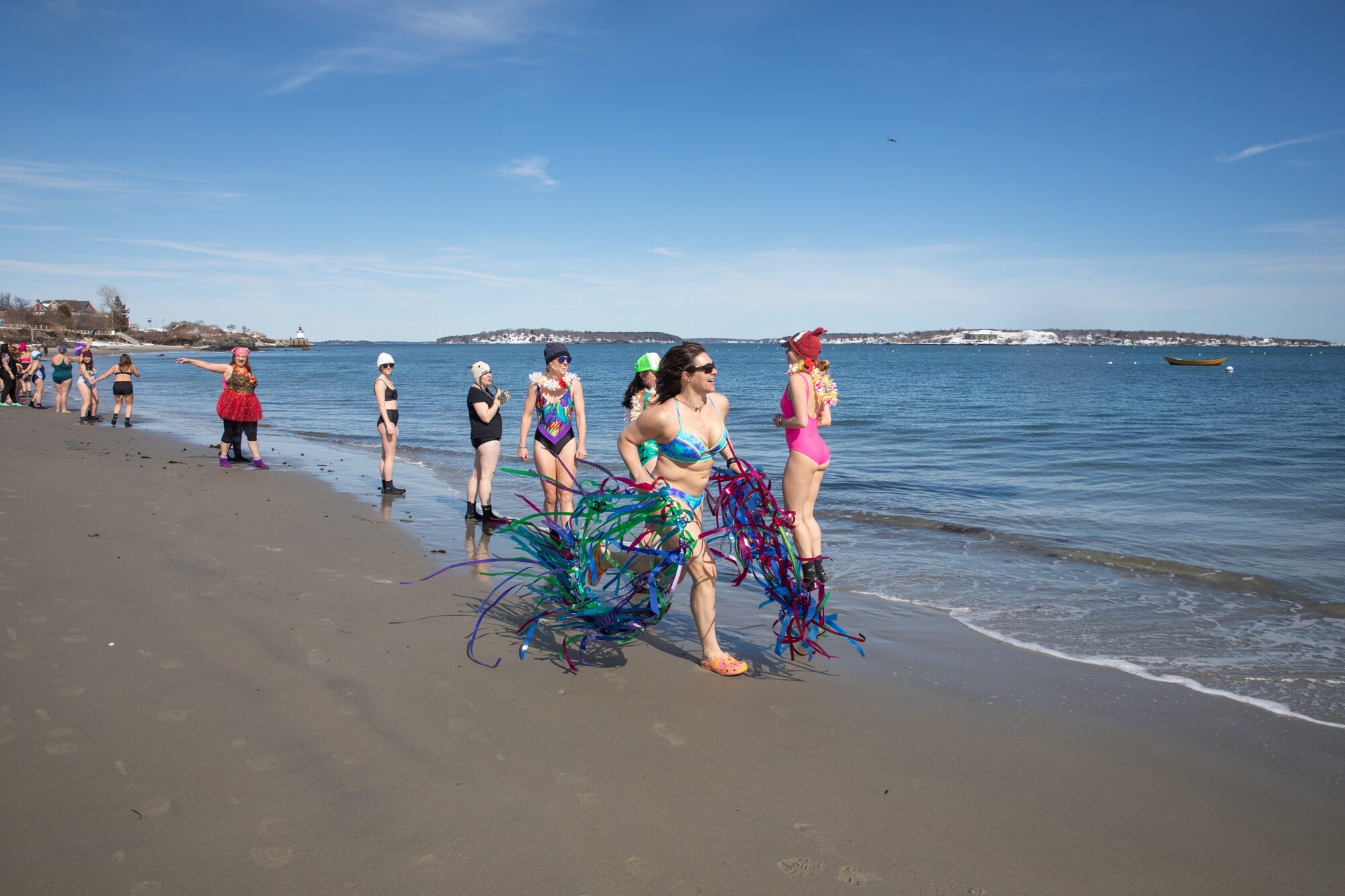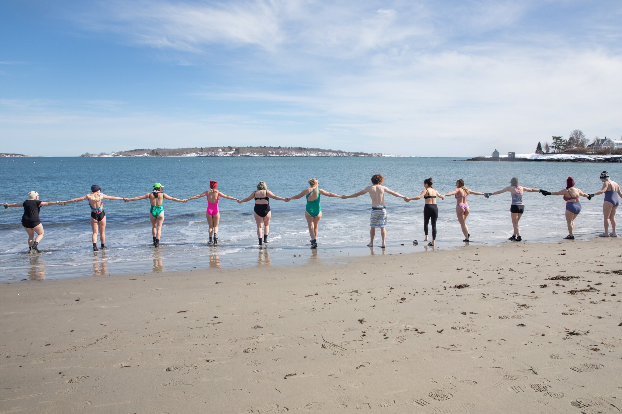 Organizers Hopkins and Hartley started dipping in 2020 as a way to get outside and get through the pandemic. Eventually, they started calling themselves “The Two Maine Mermaids” and created a web page inviting others into their cold-water community.