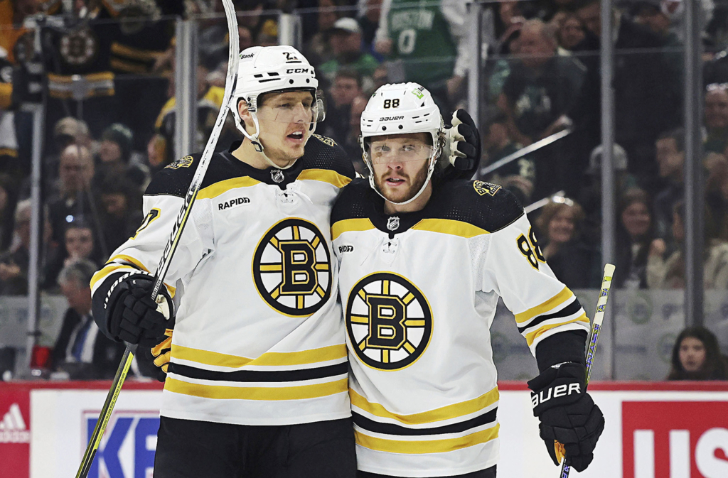 Jake DeBrusk, David Krejci, Patrice Bergeron and Trent Frederic also scored for Boston, which has won two in a row as it seeks to surpass the record 62 wins and 132 points in a season.