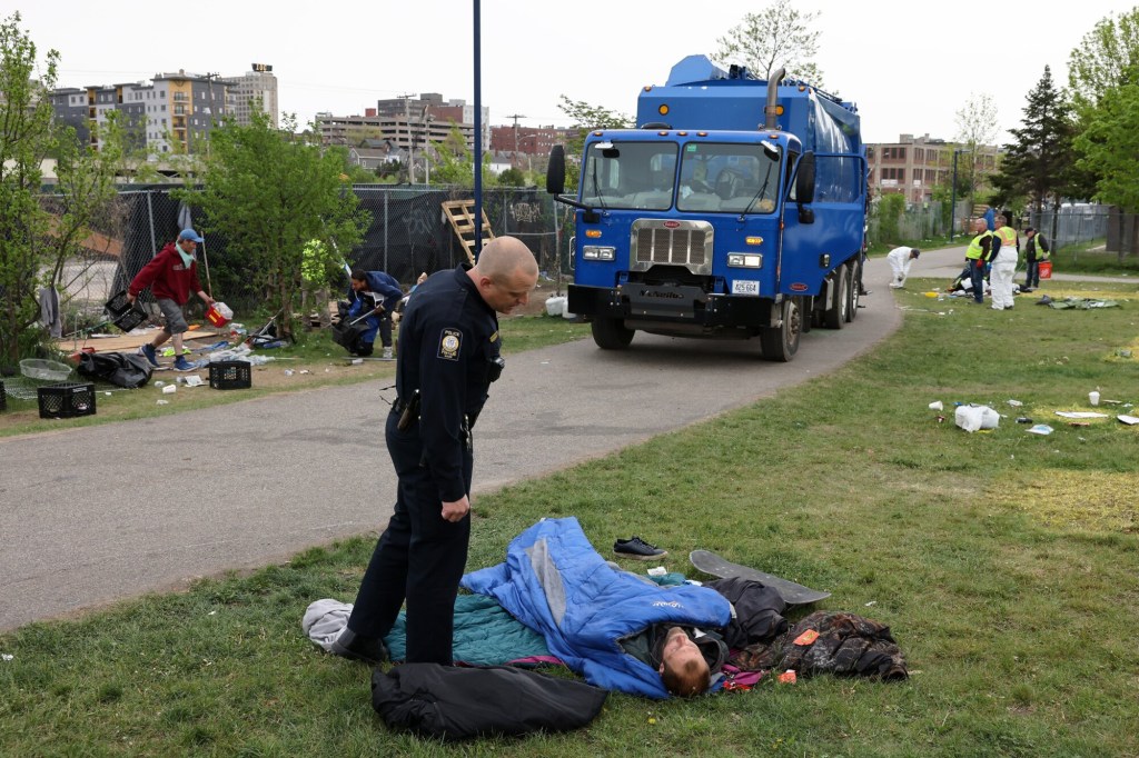 By midday Tuesday, city spokesperson Jessica Grondin said that the clearing had gone as planned and no major problems arose. Several Portland police officers were on hand helping wake people in the early hours, but there were no arrests or summonses, a police department spokesperson said.