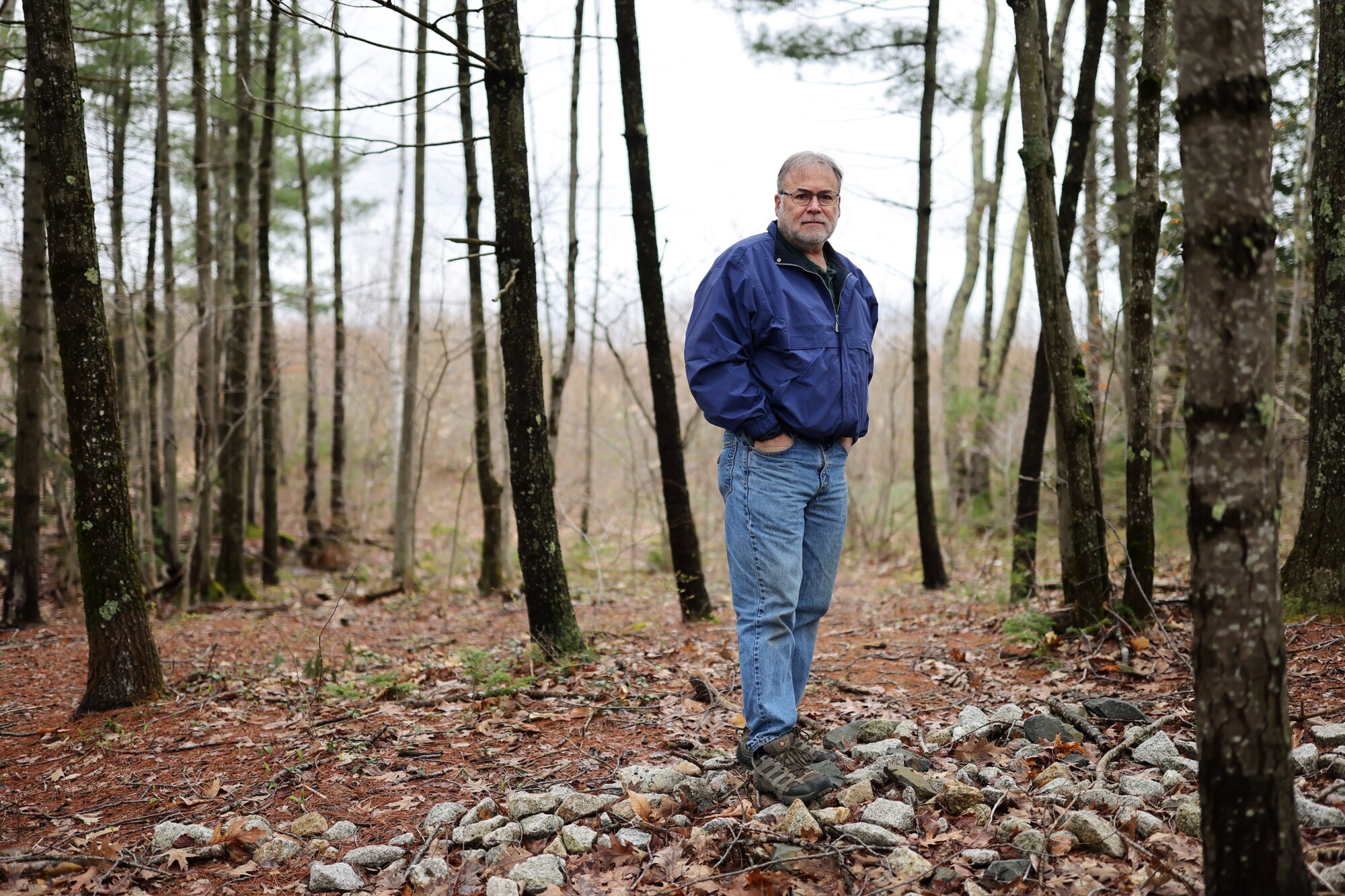 Walter Butler stands on the edge of a 22.42-acre parcel he donated in 2014 to the town of Standish, which was intended to become a six-field soccer complex. Ben McCanna/Staff Photographer