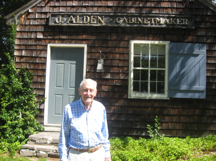 Alden’s full time job after the war as a shop teacher in a converted one-room school in Windham paid $3,000 a year, and he found it hard to stretch the salary enough to support his family. He joined his father in woodworking, and they were well known for the Windsor chairs they turned out. Alden built most of the furniture in his family’s home, where, now a widower, he lives with daughter, Heather Alden.