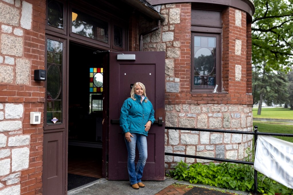 Victoria “Queenie” Thayer outside of the Deering Oaks castle in 2022. A little over a year after Thayer opened a cafe in the building, she’s closed it for good. Brianna Soukup/Staff Photographer