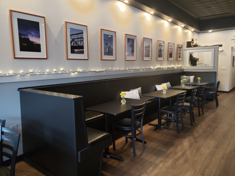 When I think of a wine and martini bar, I think of someplace cozy and comfortable, perhaps a bit upscale. That’s not the vibe at Bread & Olive, where the lighting is surprisingly harsh and the décor relatively stark, although I appreciated the photos on the walls. All of the seating is wooden and not overly comfortable. But on a positive note, there are hooks under the bar.
