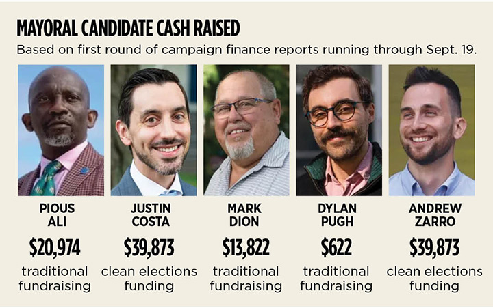 The two candidates who are using the new program – Justin Costa and Andrew Zarro – have tapped into roughly $40,000 so far. That’s about twice as much as Pious Ali, who has raised the most out of the remaining candidates, according to the first round of campaign finance reports, which run through Sept. 19.