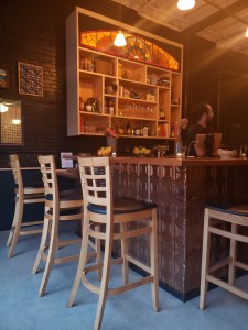 Marr greeted us, telling us to sit anywhere and come order at the bar once we were ready. The cocktail menu was small but intriguing – we would happily have tried any of the six $13 cocktails. There were also five wines by the glass: a sparkling rose, two whites and two reds, ranging from $13-$16. There’s a rotating selection of $7 draft beer and two $7 mocktails, along with four options for bar snacks, one of which is treats from Prairie Baking.