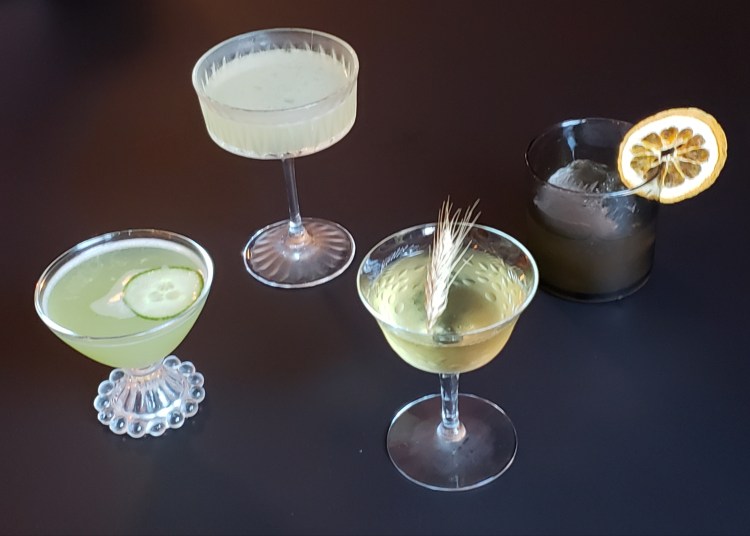Cucumber Mint Gimlet mocktail, La Llorona, Night Mares on the Prairie and Gulfaxi from Night Mares in Portland. Photos by Greg Bryan
