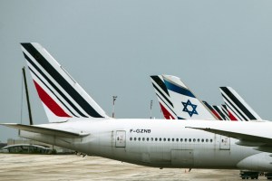 Tail fins of passenger planes operated by Air France-KLM and El Al Israel Airlines. Bloomberg photo by Nathan Laine