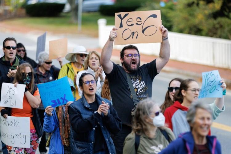 Mills has declined to discuss her position on the proposal. A spokesperson declined to make her available for an interview Monday to elaborate on her concerns and did not respond to questions about whether she was in the Blaine House at the time of the rally, which included a march around the state house as participants chanted “Yes on 6!”