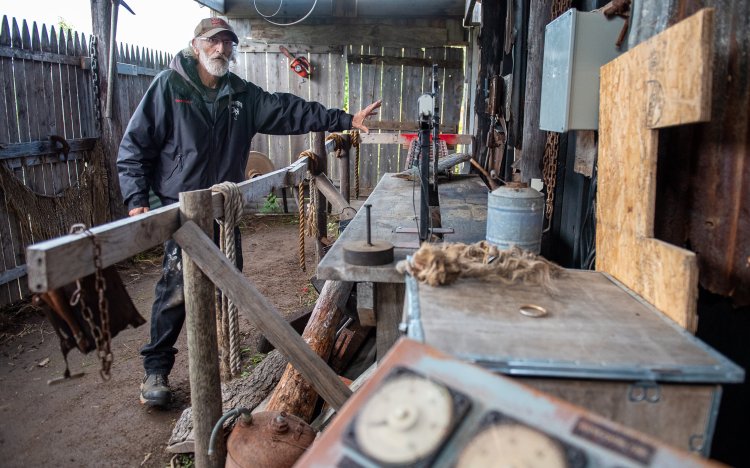 Jeff Strout, creator of Nightmare on the Ridge, stands Wednesday afternoon outside the sawmill along the haunted walk he is in the process of changing at Wallingford’s Fruit House in Auburn. At issue was a scene depicting a scantily clad woman being sawed in half. Russ Dillingham/Sun Journal