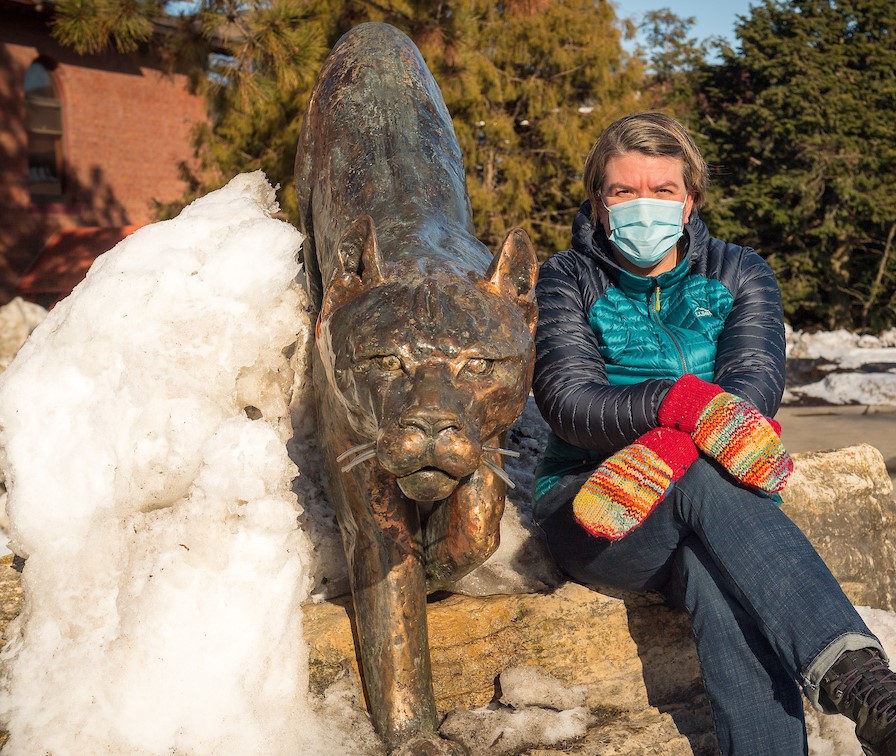 UVM Alum Jennifer Ellis with Bernie mittens Sally McCay