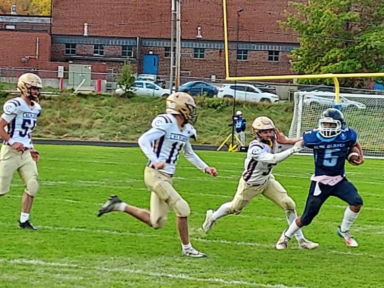 After Osei twice ran for six yards for a first down at the 36, Osei broke free for 17 yards and a first down at the Blue Blazes’ 47. After St. Onge spiked the ball to stop the clock, Osei ran for seven yards, but St. Onge threw incomplete, then St. Onge was held to one yard on fourth-and-3, giving Westbrook the ball back at its 39 with 10 seconds to go.