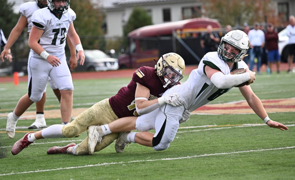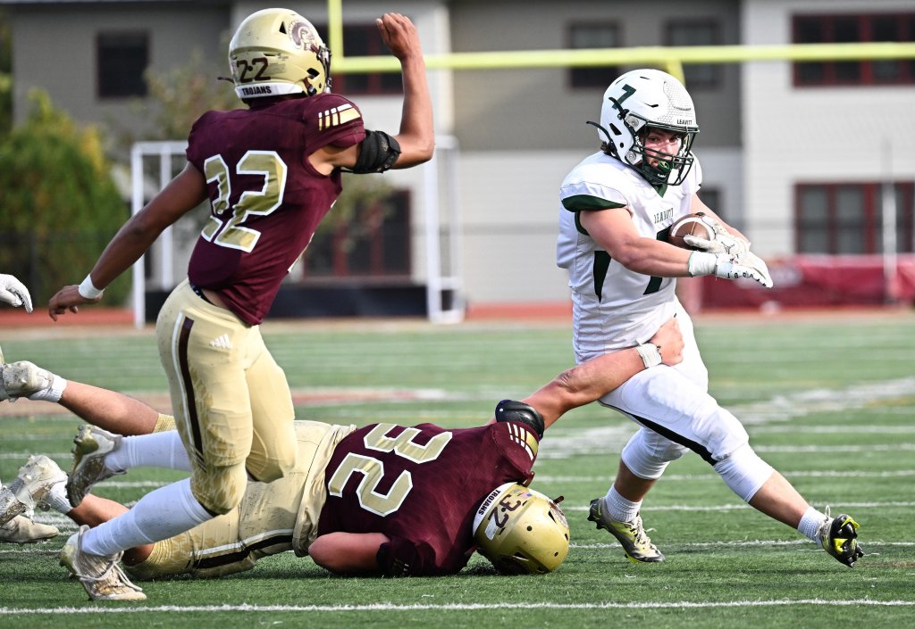 Thornton had things going its way early. Benoit’s 3-yard run capped a game-opening 14-play, 71-yard drive that chewed up over six minutes and included three well-thrown completions by Benoit. A 70-yard jet sweep sprint by Jackson Paradis put Thornton ahead 14-0 with 3:01 left in the first quarter. After Carpenter’s first touchdown run, a 14-yard scramble on fourth down, made it 14-6, Benoit connected with Xander Cantara for a 28-yard touchdown.