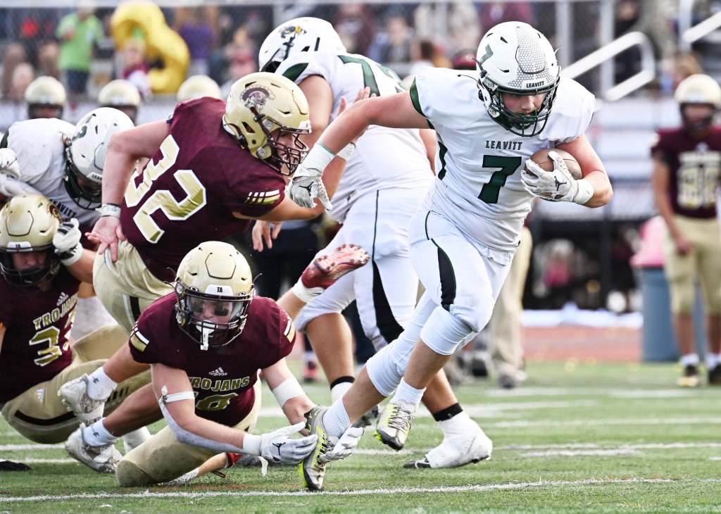 Leavitt improved to 7-0 and completed a historic four-week run of beating teams in higher divisions, including three from Class A. The streak was bookended by wins against last year’s Class A champion (Oxford Hills) and runner-up.