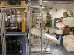 A Tanbark employee oversees a demonstration of how the company’s sustainable packaging is made. Eloise Goldsmith photo