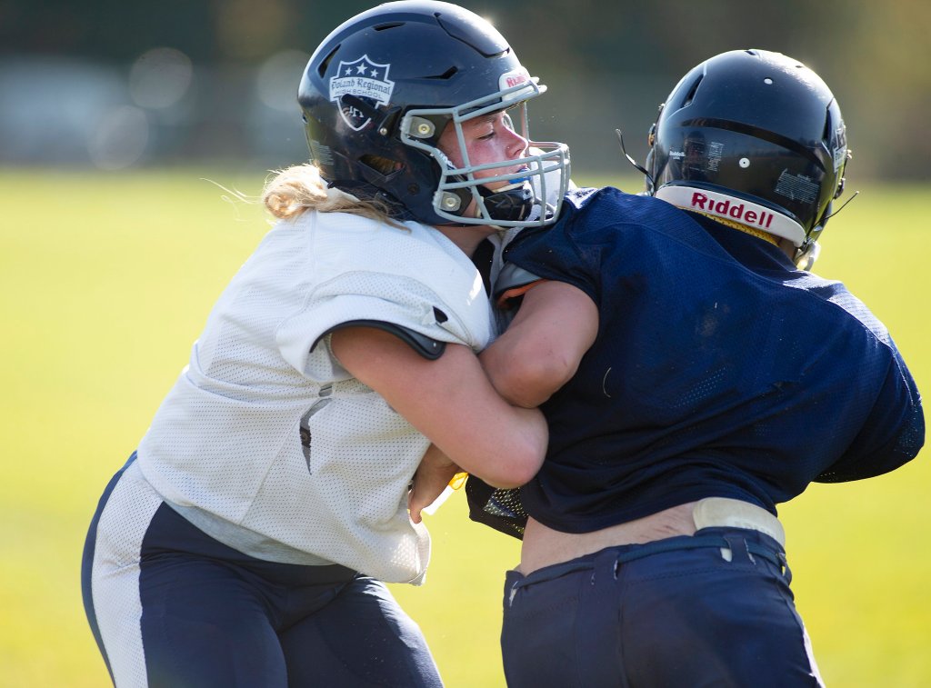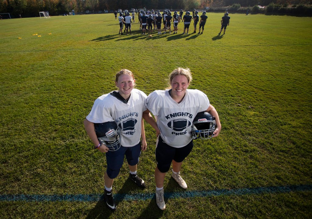 Emma Martin and Nicole Rioux admit there are challenges being among the few girls who play high school football in Maine.