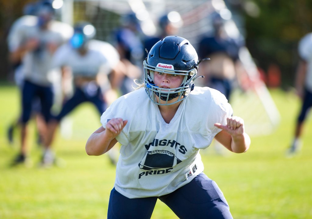 Nicole Rioux, the starting right guard at Poland, has been playing football since sixth grade. Derek Davis/Staff Photographer