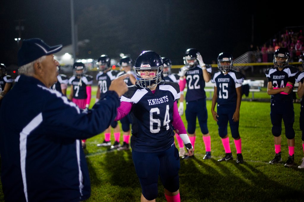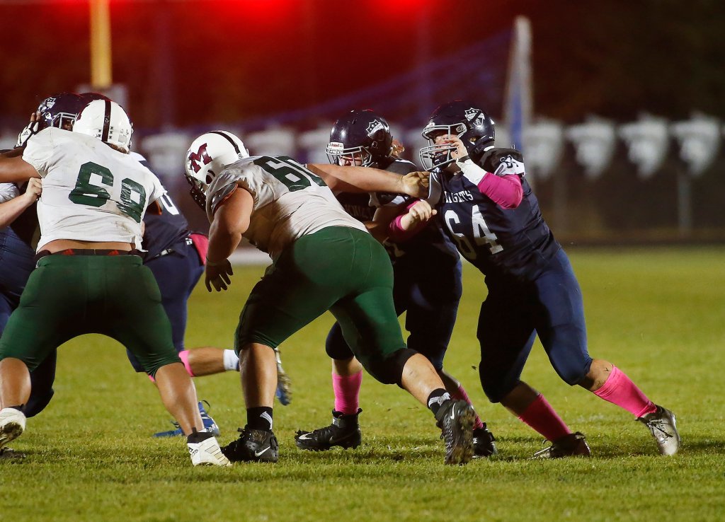 Cook said it wasn’t an easy situation for Rioux to move into the starting lineup to replace O’Driscoll, who was hurt in the Knights’ third game of the season at Freeport. At halftime, the decision was made to move Rioux, previously the backup at left guard, to the starting spot.