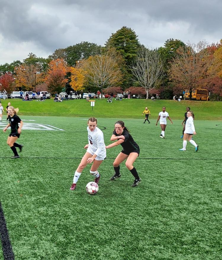 Just over three minutes in, off a corner kick serve from junior Ella Giguere, classmate Lyla Casey sent the ball home for a quick 1-0 lead.